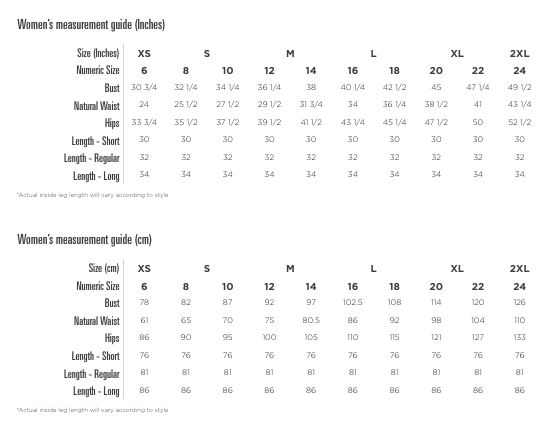 | EURO Size | 34 | 36 | 38 | 40 | 42 | 44 | 46 | 48 | 50 | 52 |