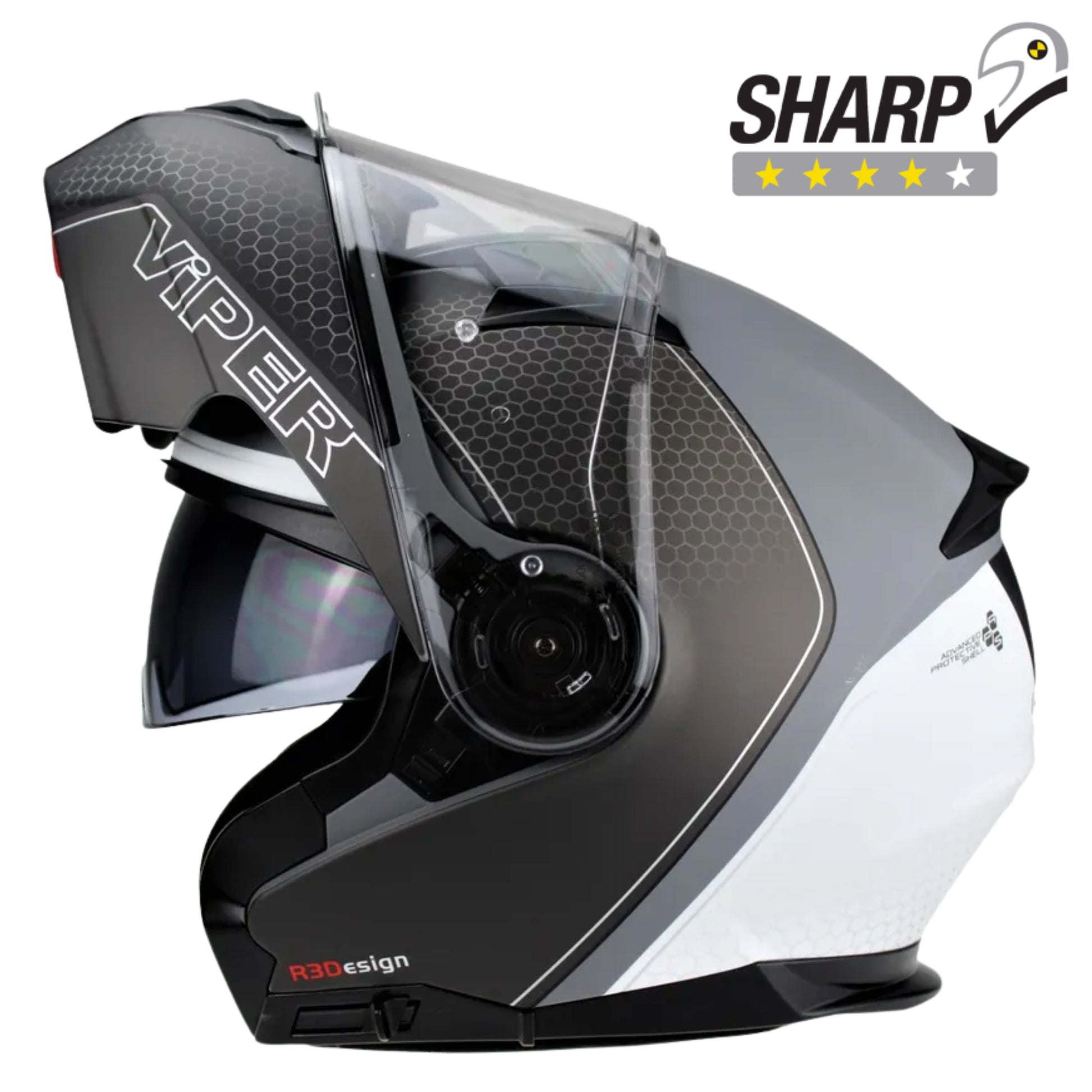 The Viper RSV345 Flip Up Helmet offers a blend of safety, convenience, and style that makes it a compelling choice for any rider. With its flip-up design, it provides the versatility of an open-face helmet while maintaining the protection of a full-face model, making it ideal for both city rides and long-distance journeys. The helmet is equipped with a high-quality visor system, ensuring clear visibility and protection against the elements. Additionally, its comfortable interior padding is designed for extended wear without causing discomfort. The Viper RSV345 also features a sleek, aerodynamic design, available in various colors and finishes, allowing you to express your personal style on the road. Rated 4-Star by Sharp.